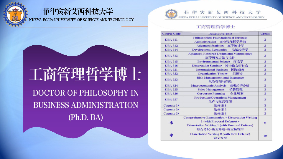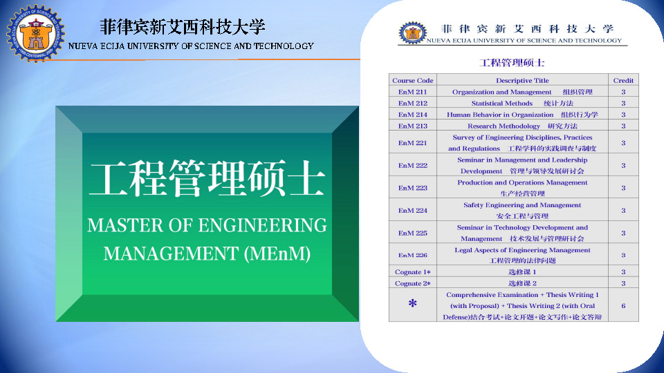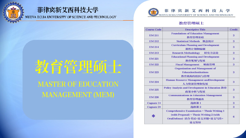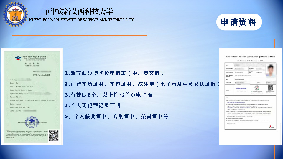 菲律宾新艾西(国立)科技大学 硕博留学学位班
