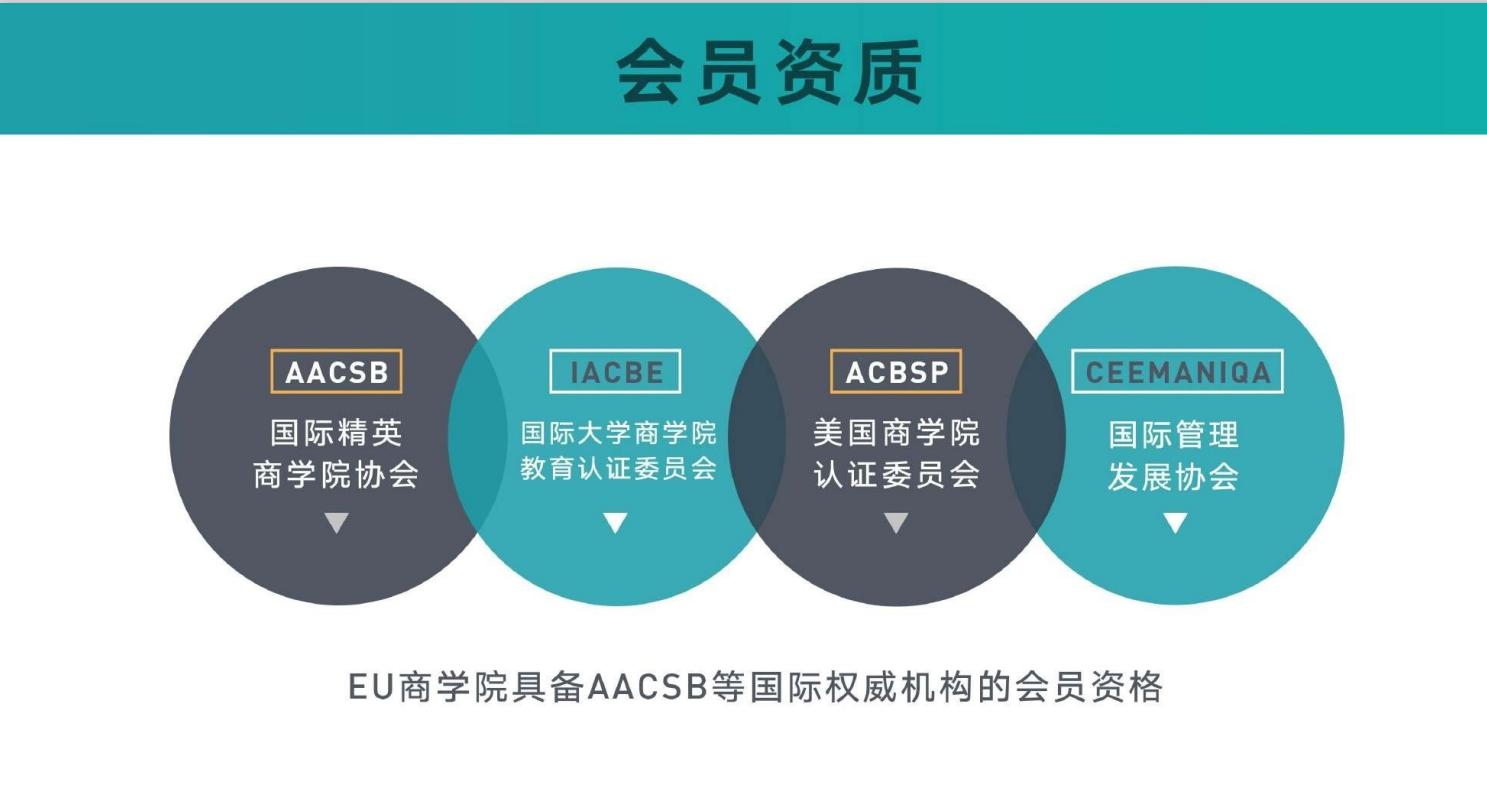 【优势】:免联考、企业上市、升职加薪等,荣获全球商学院权威认证机构AACSB、IACBE、ACBSP、CHEA等认证。