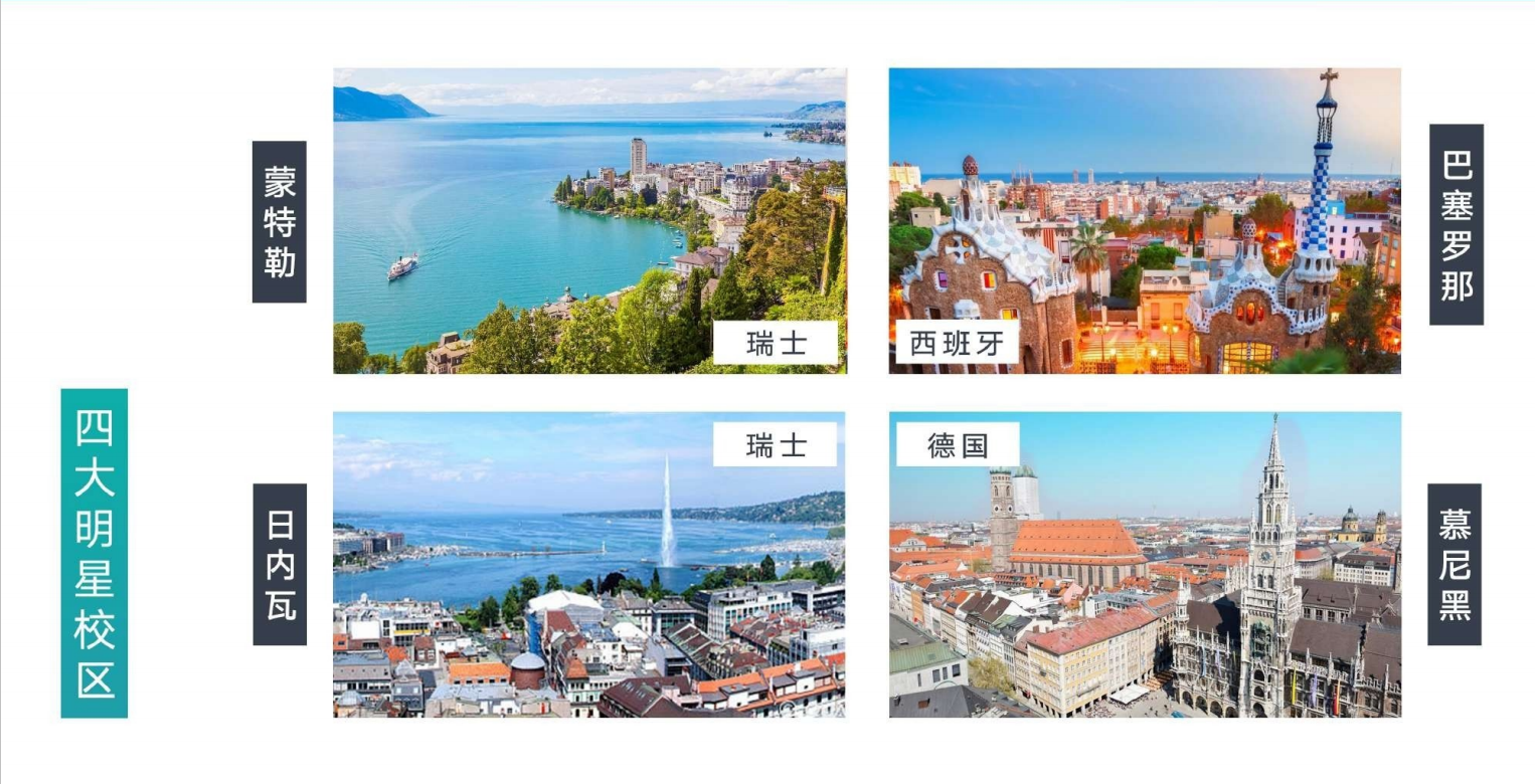明星校区:(瑞士日内瓦、蒙特勒、德国慕尼黑、西班牙巴塞罗那)