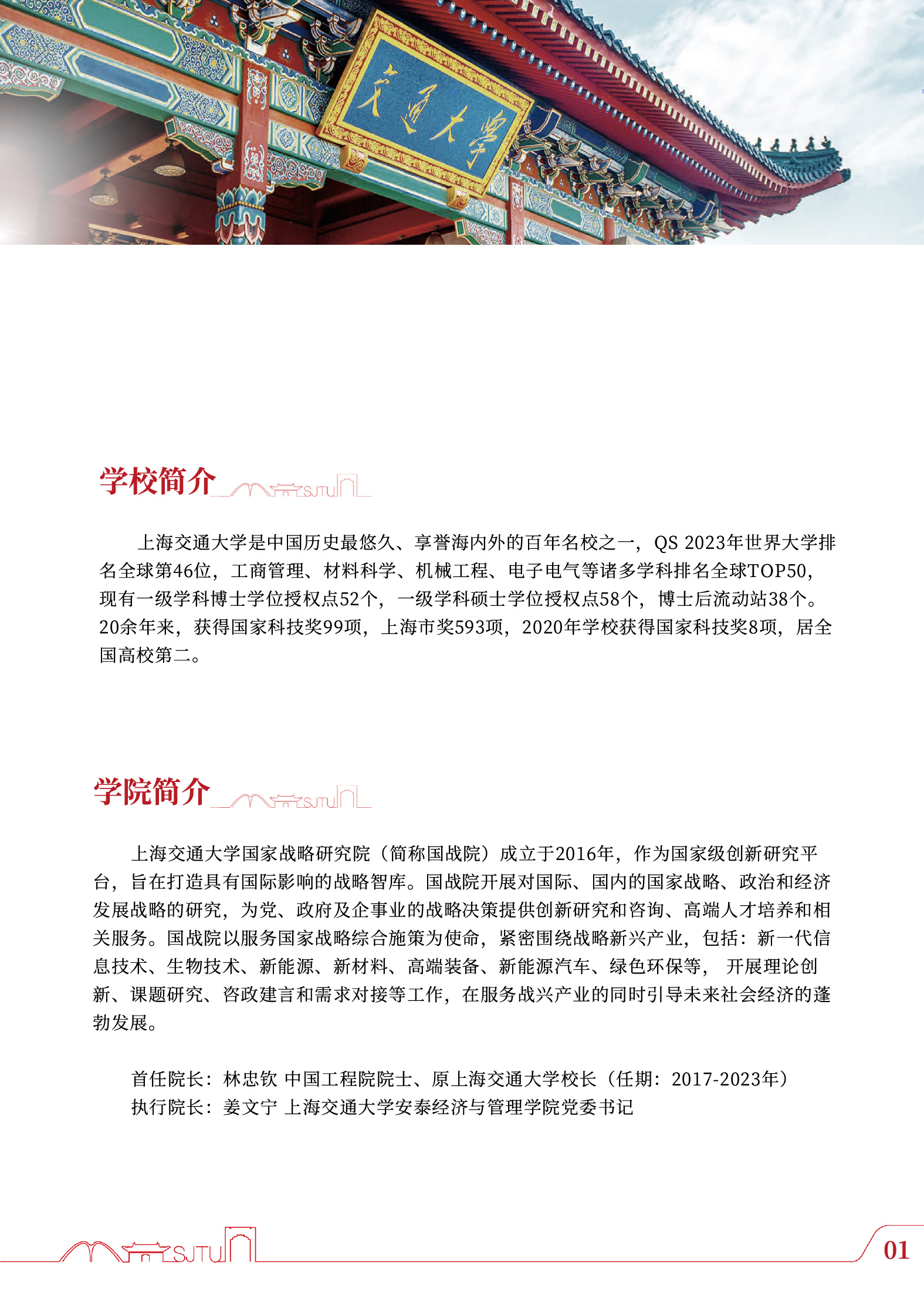 上海交通大学国家战略研究院博后战略高级研究班简章