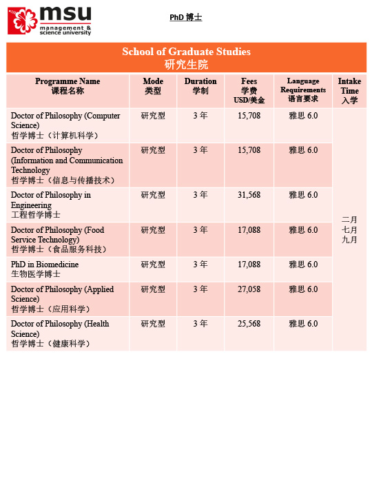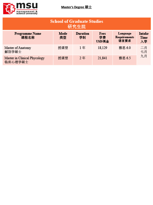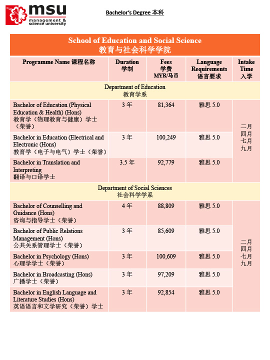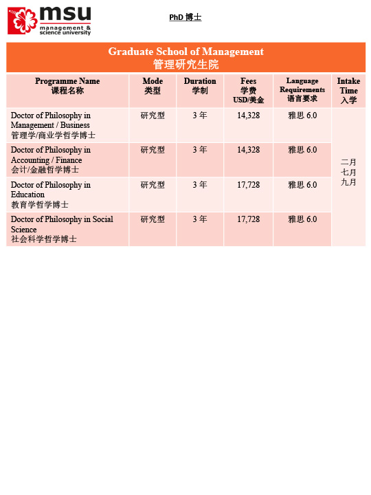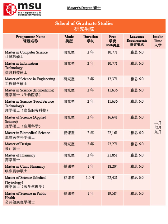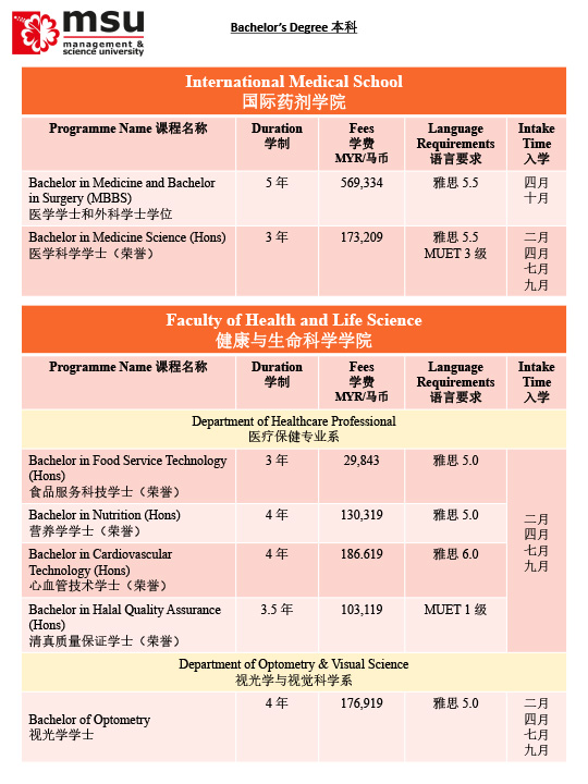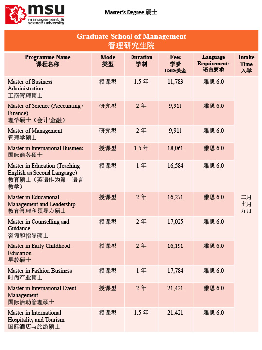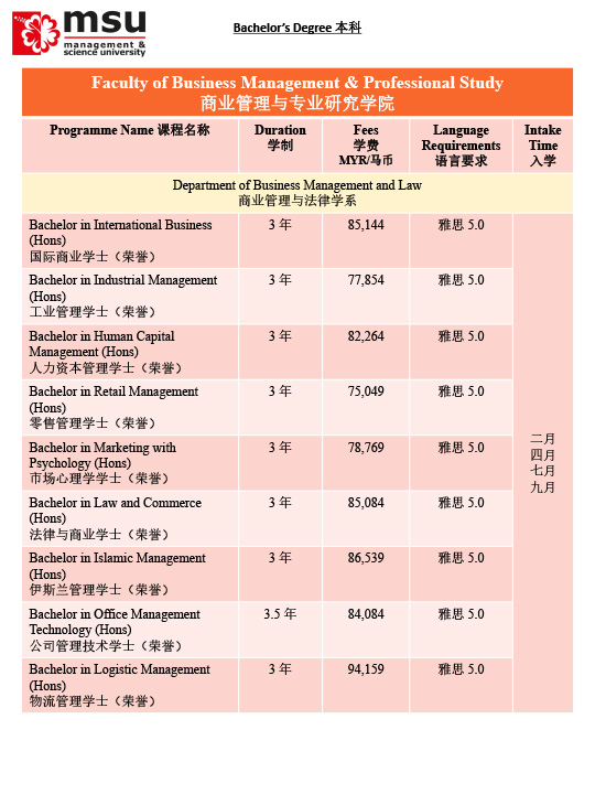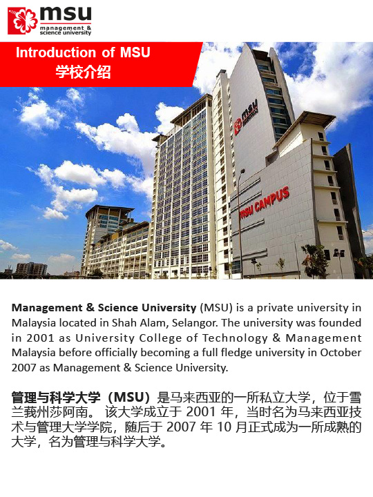 马来西亚管理与科学大学MSU招生简章