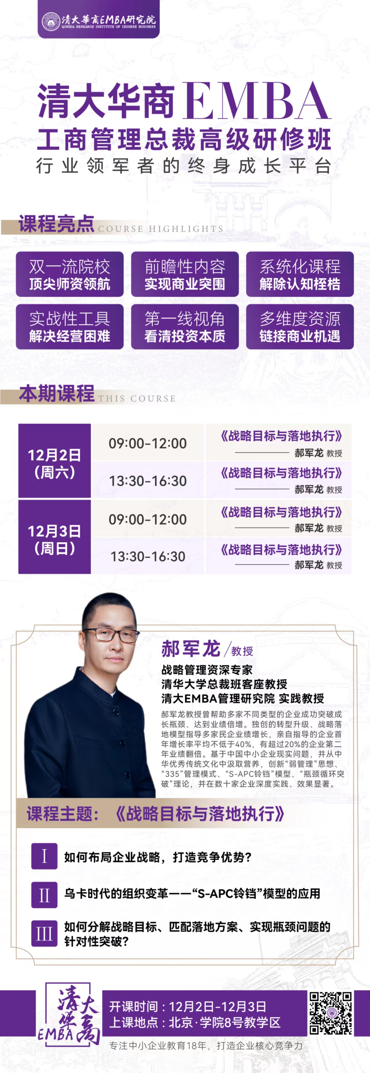 清大华商EMBA工商管理总裁高级研修班,2023年12月02-03开课通知