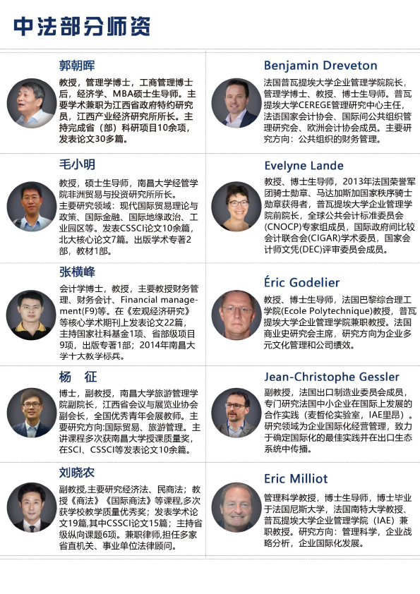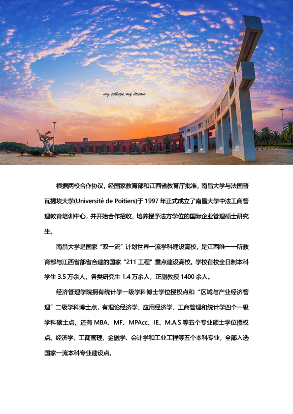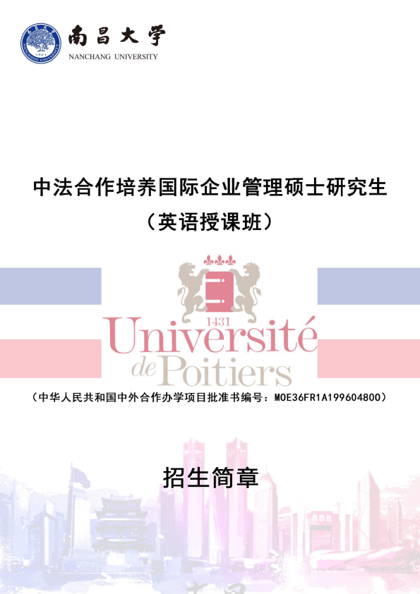南昌大学中法合作培养国际企业管理硕士研究生招生简章