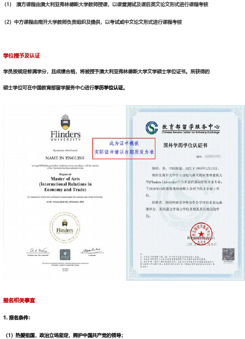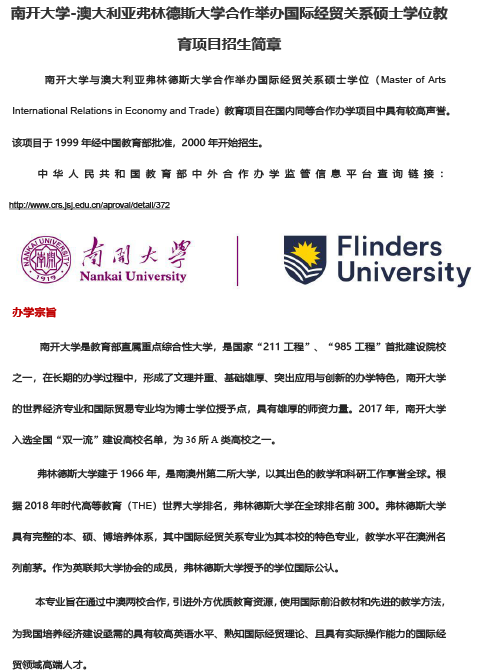 南开大学-澳大利亚弗林德斯大学合作举办国际经贸关系招生简章