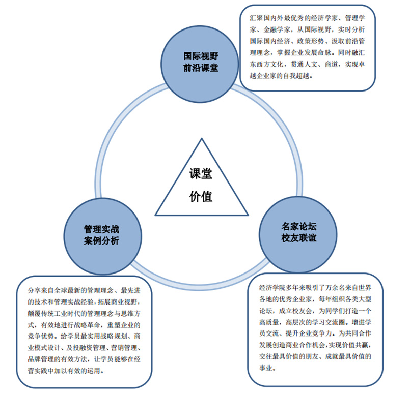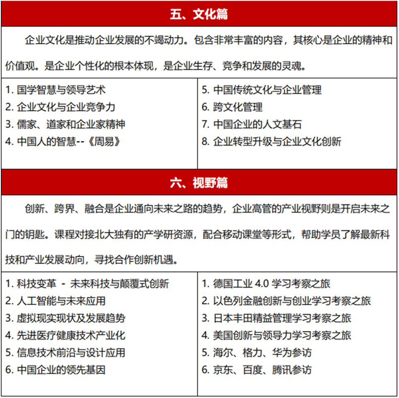 北京大学企业管理素养(EMD)研修班主要以北京大学校内外的优秀教师和知名学者为主讲师资,采用老师讲授、企业参观考察、案例研讨相结合的方式教学,旨在: