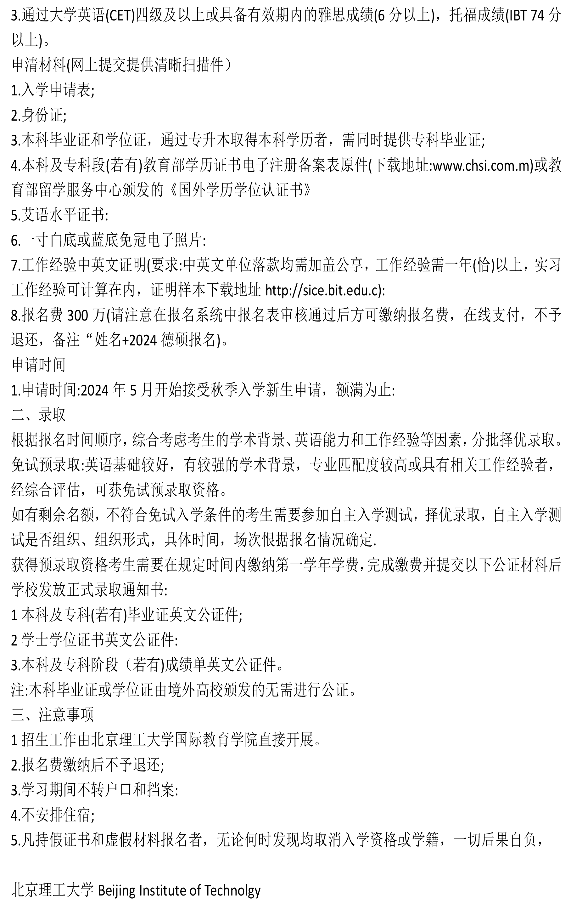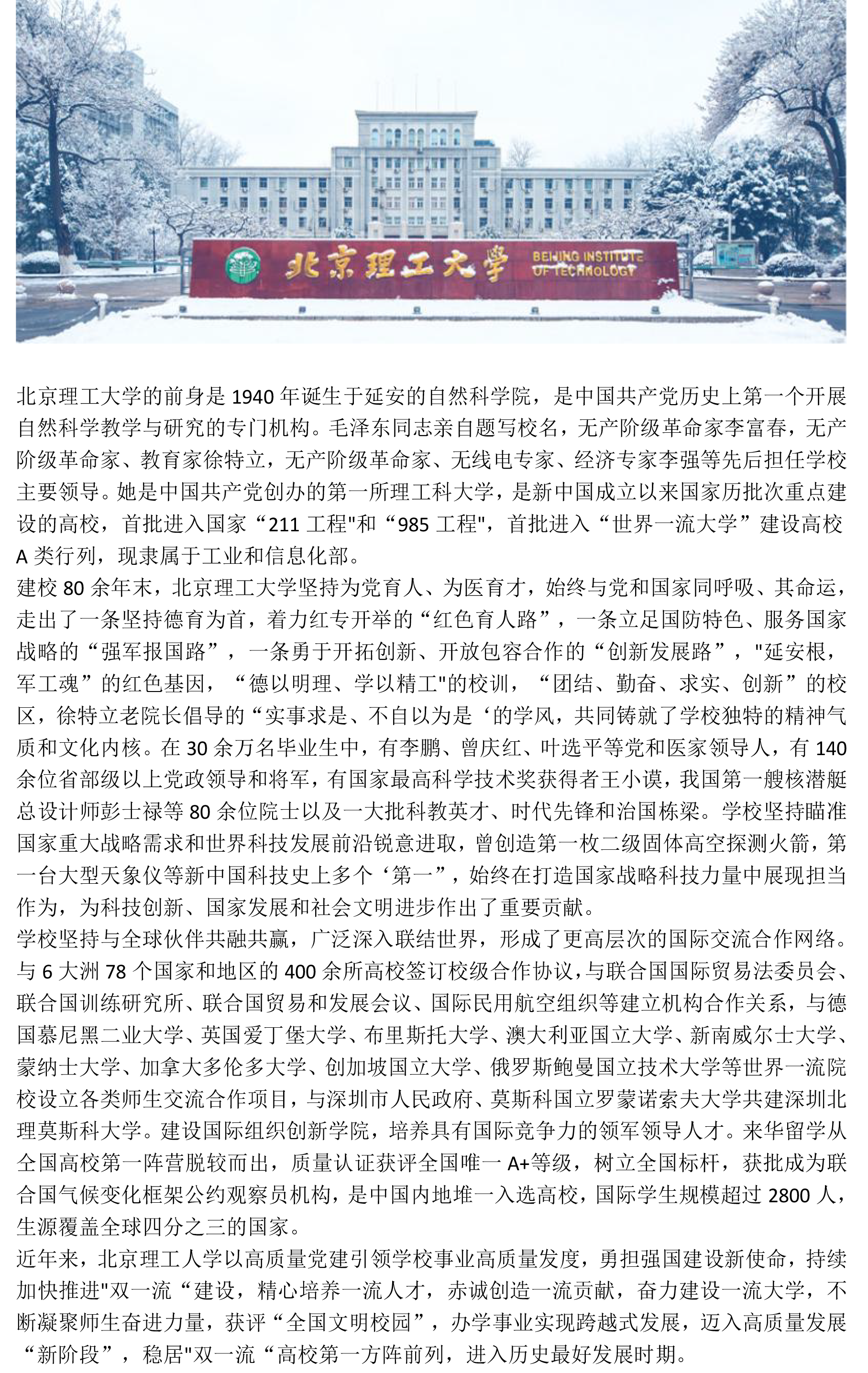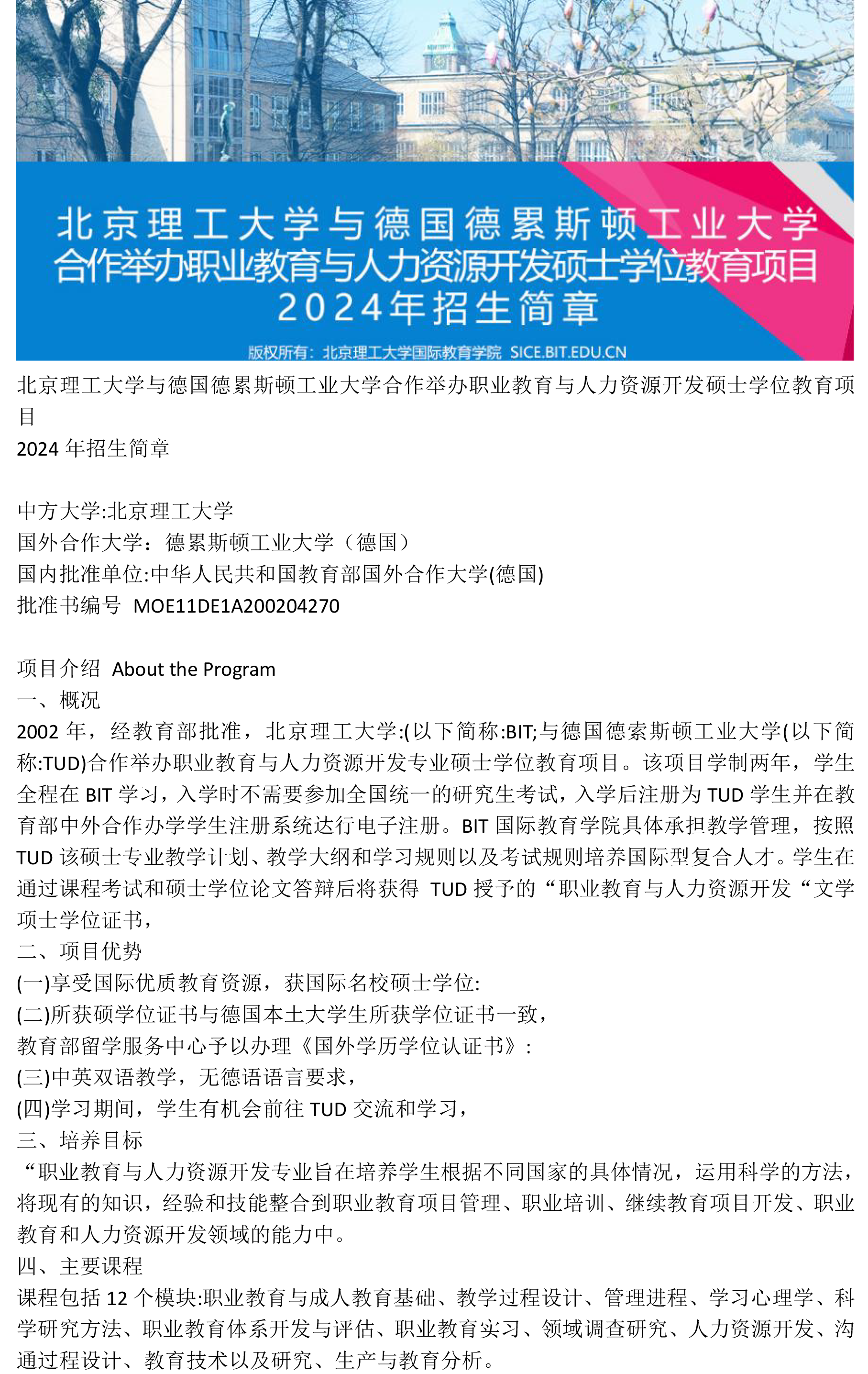 北京理工大学与德累斯顿大学2024年招生简章