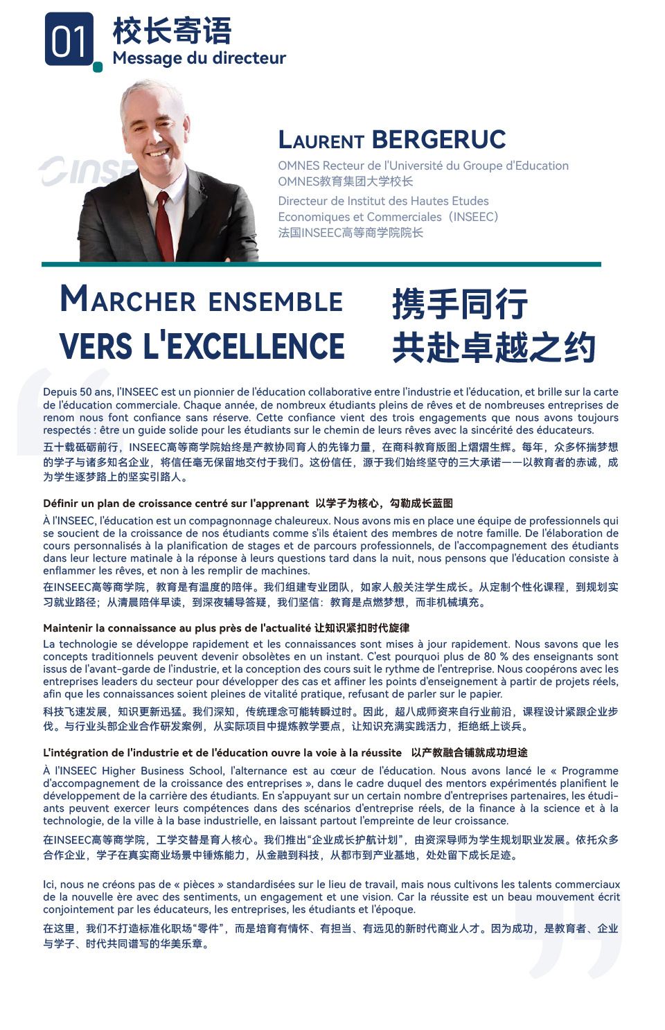 INSEEC不止注重学生的学科知识,更强调学生的实践能力。从1975年建校起,学校就树立起两个重要教学理念:持续发展的综合知识和国际化的视野。INSEEC严格遵循“培养企业最需要的人才、传授企业最实用的技术与经验”的教学宗旨。当前,INSEEC所拥有的16所高等学院的文凭全部被中国国家教育部承认,参见中国教育部教育涉外监管信息网法国高校推荐名单,集团下属教育机构包括:集团16所学校有30%的外国学生,他们分别来自美国、墨西哥、欧洲各国、日本、中国、韩国、越南、马来西亚等20多个国家和地区;校友120,000多名遍及全世界各著名企业,形成INSEEC极具影响力的全球校友联络网;10,000多个国内外友好企业,助于信息沟通和学生的实习和就业;在美国、墨西哥、澳大利亚、欧洲及亚洲与200多所著名学府建立了长期的合作教育网,共享全球化的教学资源。