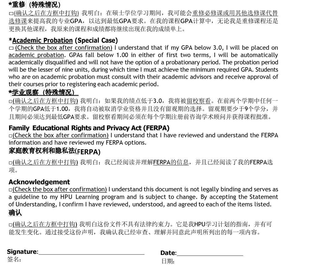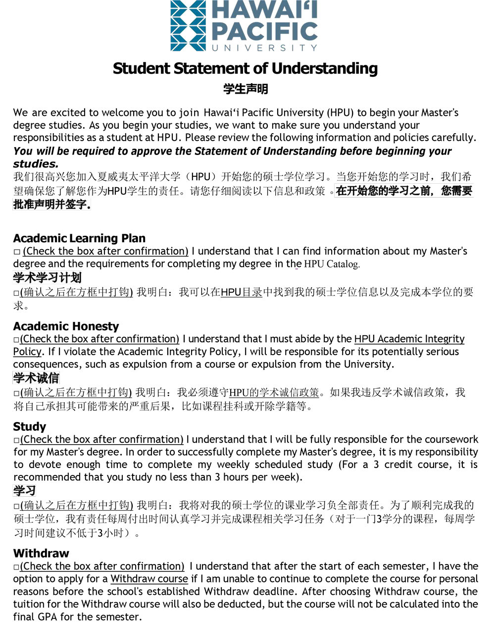 HPU 夏威夷太平洋大学 MBA 工商管理硕士 SOU学生声明
