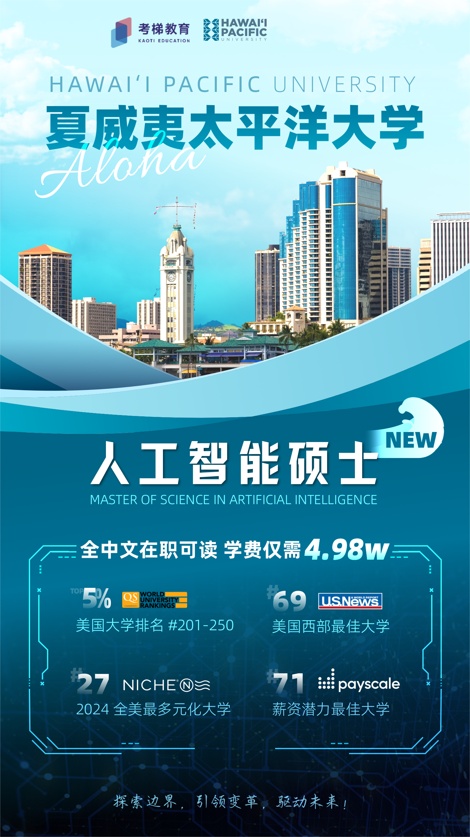 HPU 夏威夷太平洋大学 MSAI 人工智能硕士 宣传海报