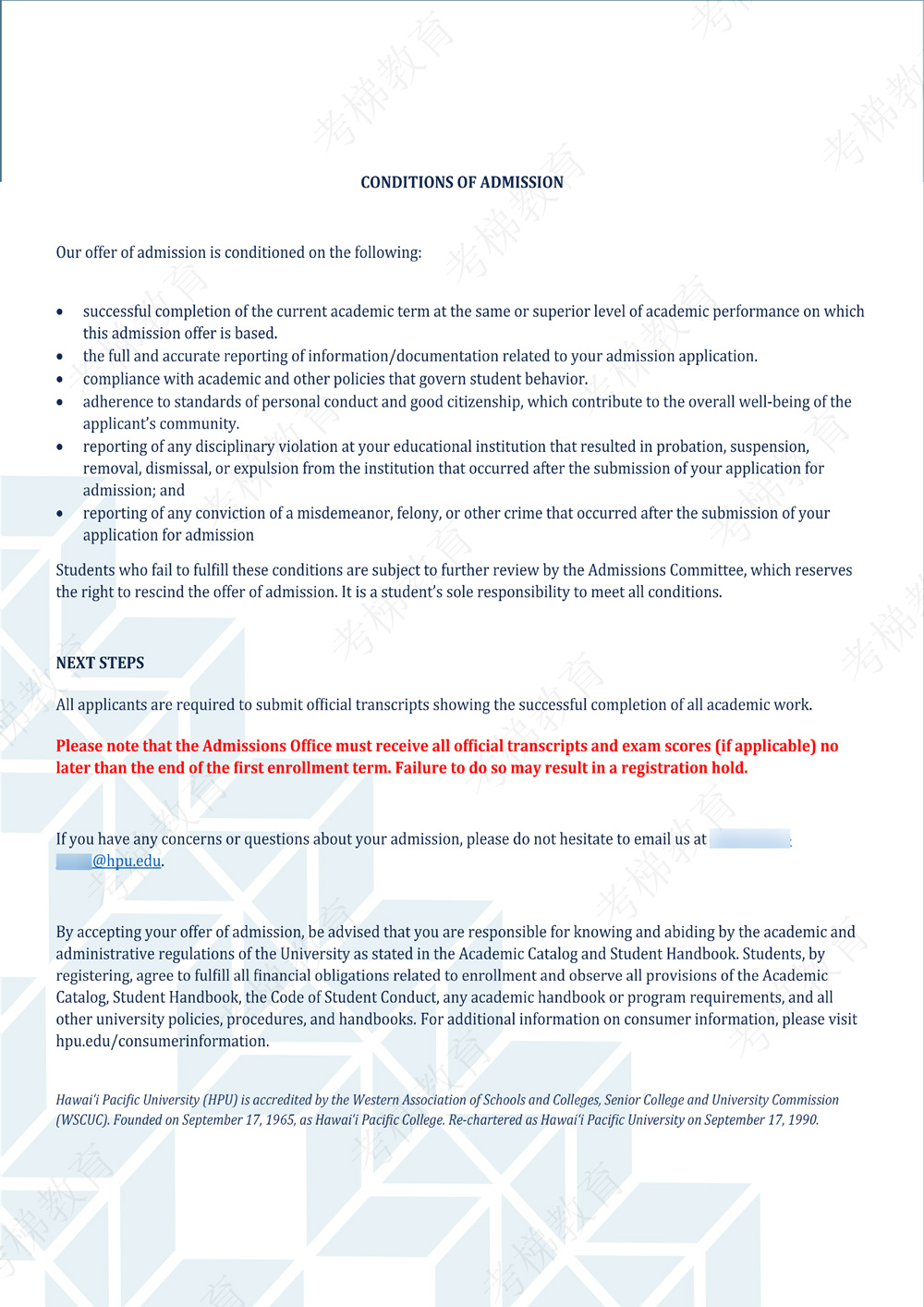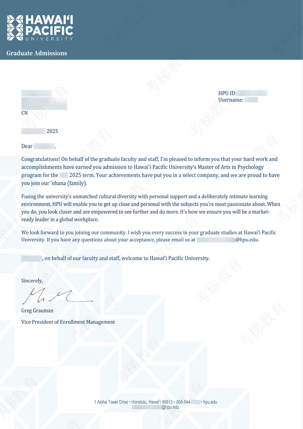 HPU 夏威夷太平洋大学 MAP 心理学硕士 录取offer