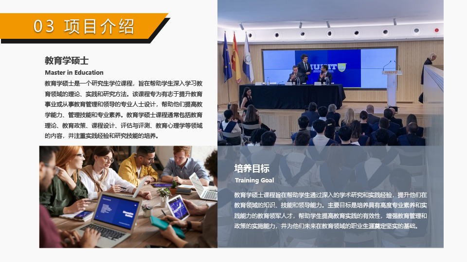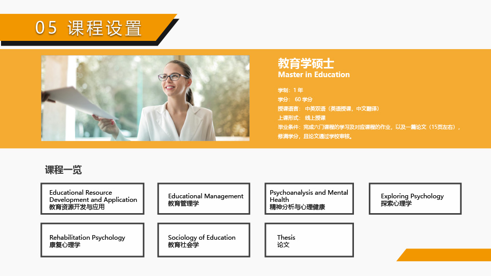 Master in Education教育学硕士是一个研究生学位课程,旨在帮助学生深入学习教育领域的理论、实践和研究方法。该课程专为有志于提升教育事业或从事教育管理和领导的专业人士设计,帮助他们提高教学能力、管理技能和专业素养。教育学硕士课程通常包括教育理论、教育政策、课程设计、评估与评测、教育心理学等领域的内容,并注重实践经验和研究技能的培养。