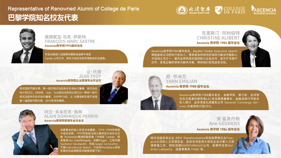 巴黎学院总部位于巴黎新凯旋门,巴黎学院Ascencia商学院是全球首屈一指的商学院,自1919年开始推行高等管理教育认证,成为AACSB的成员。AACSB教育认证制度之严、标准之高、冠居全球,世所公认,其代表着商学教育达至世界级水平的重要标志。在2022年Eduniversal商学院排名中,Ascencia商学院有六个专业在全法商学院中排名前列。