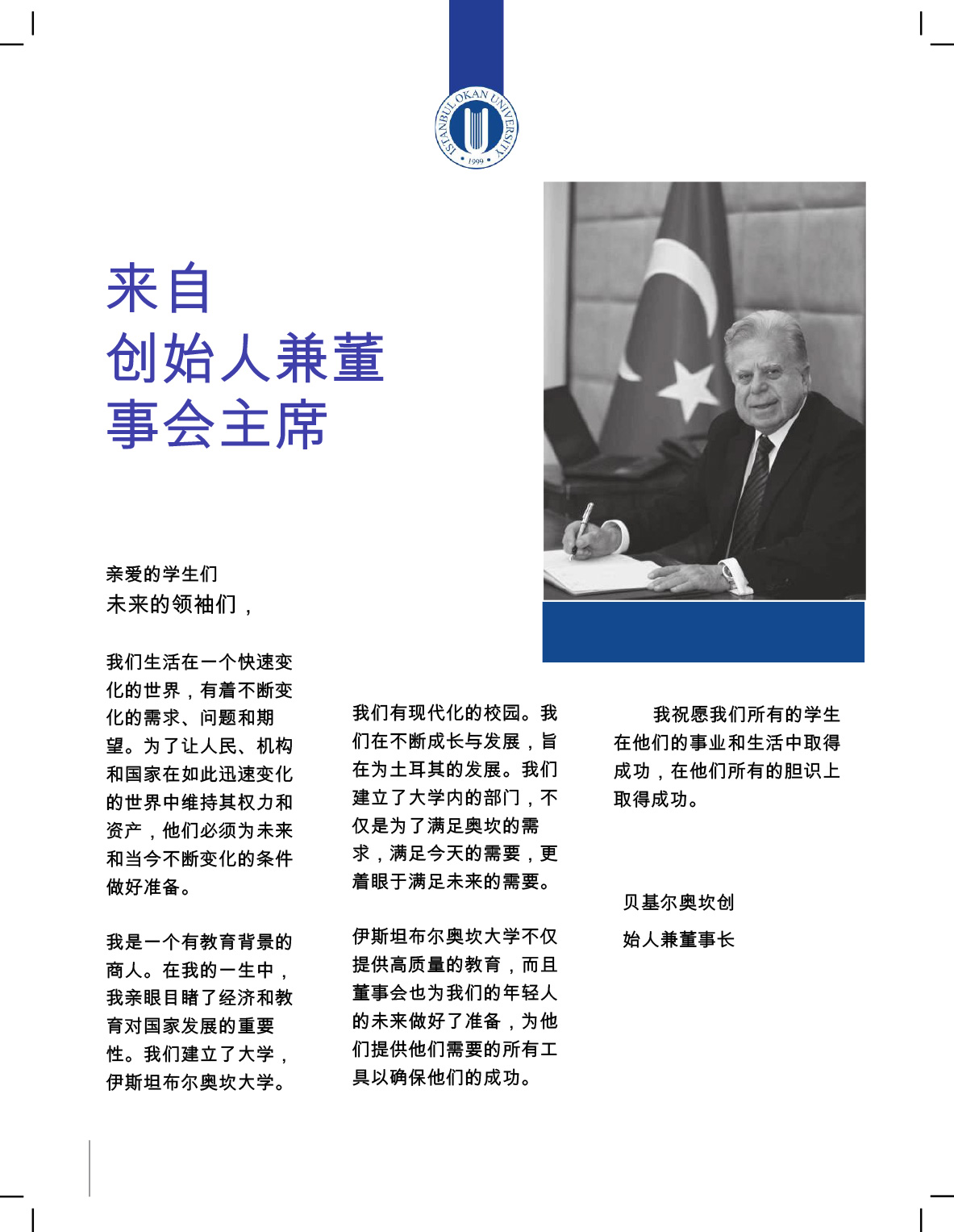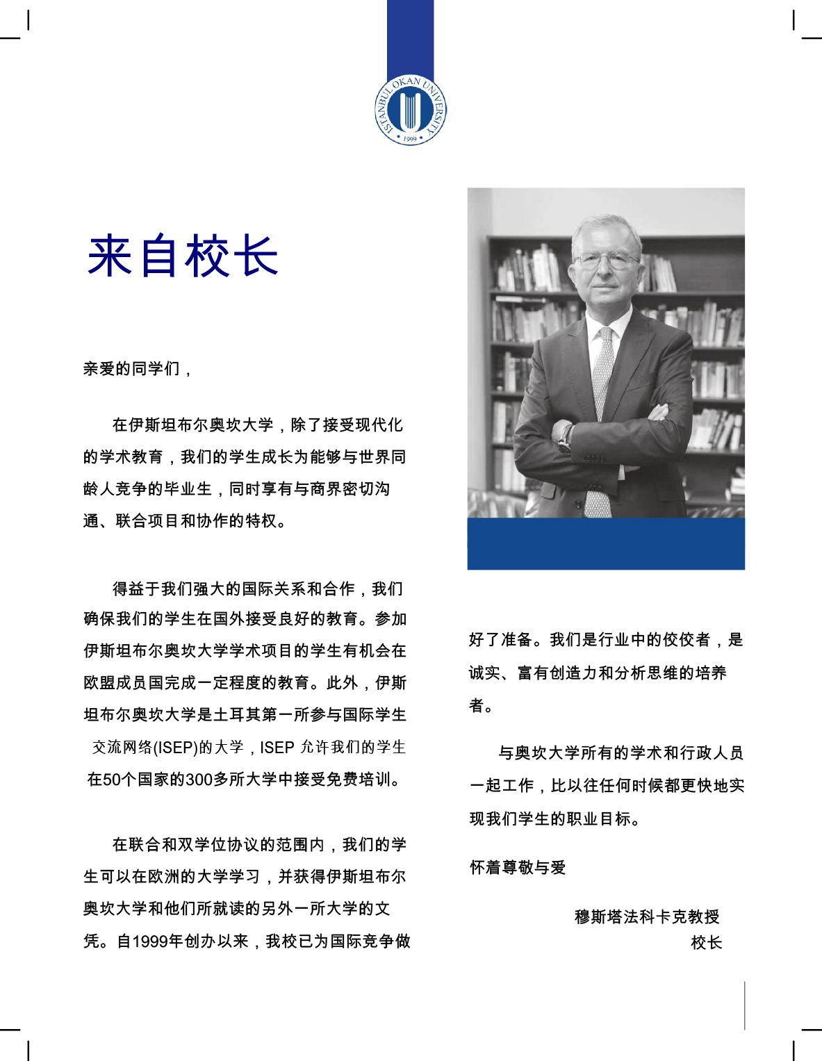 大学与各商业部门紧密合作,制定课程和实习计划,以提高学生的就业能力。除了现代学术教育,我们的学生在伊斯坦布尔奥坎大学与商业世界有密切的接触。这是最接近我国商业的大 学。因此,我们的国际学生将能够与世界各地的所有同龄人竞 争,并有幸参与联合项目和合作。