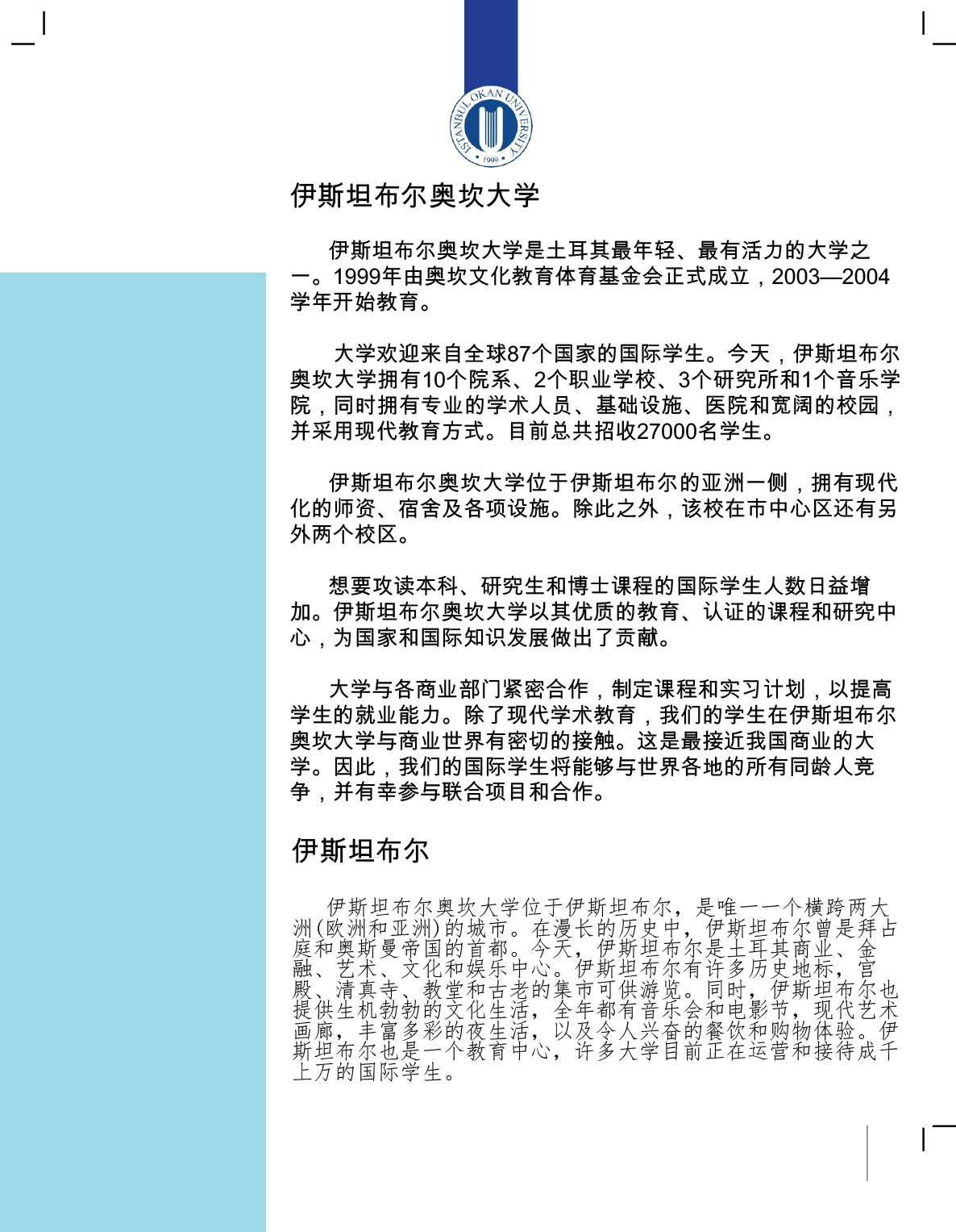 伊斯坦布尔奥坎大学位于伊斯坦布尔的亚洲一侧,拥有现代化的师资、宿舍及各项设施。除此之外,该校在市中心区还有另外两个校区。