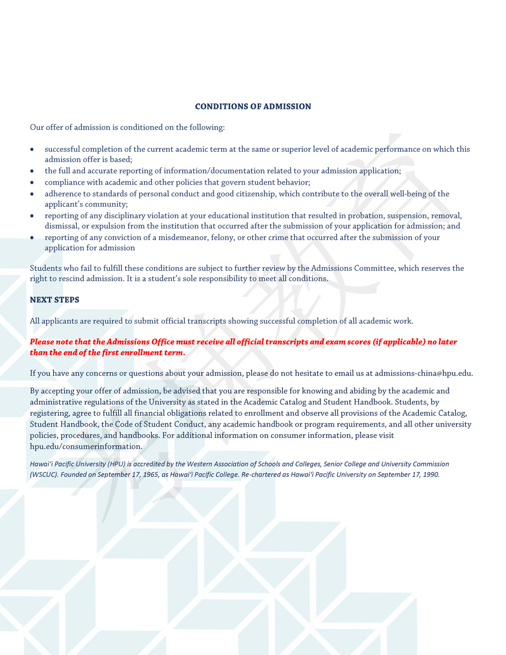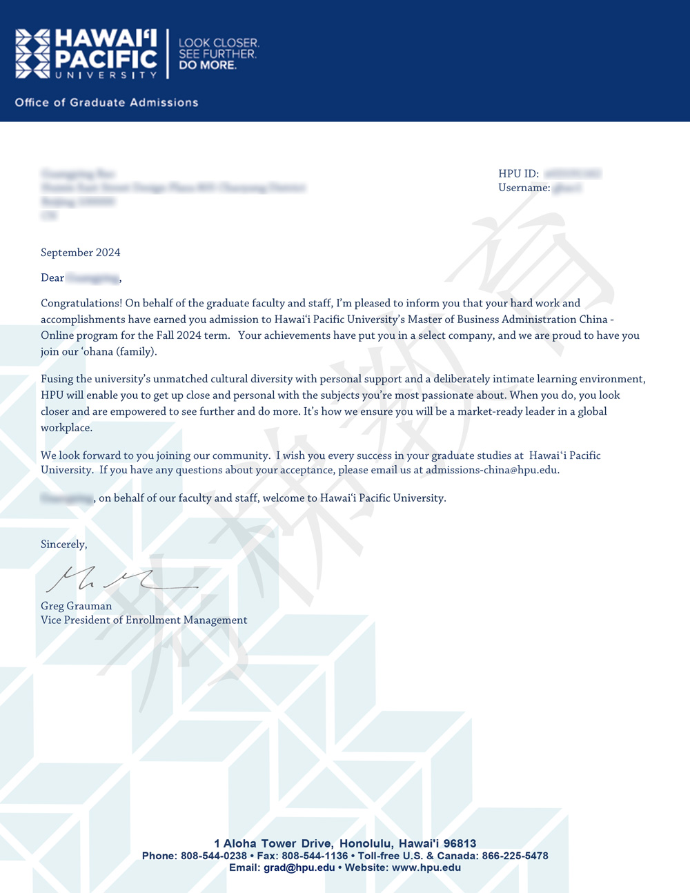 HPU 夏威夷太平洋大学 MBA 工商管理硕士 录取Offer