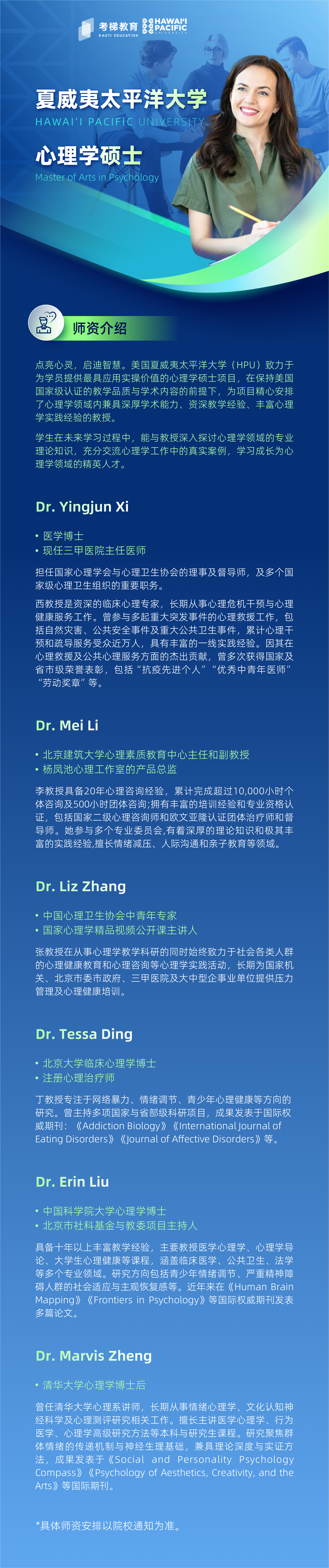 HPU 夏威夷太平洋大学 MAP 心理学硕士 师资介绍